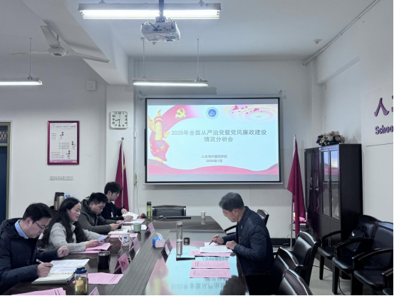 2026年1月27日,人文与外国语学院2025年度全面从严治党暨党风廉政建设情况分析会在闻理园A3-306会议室召开,学院党政领导班子成员、学院内设机构负责人等参加会议,校党委副书记单胜道到会督查指导,会议由学院党委书记邵莉敏主持。
