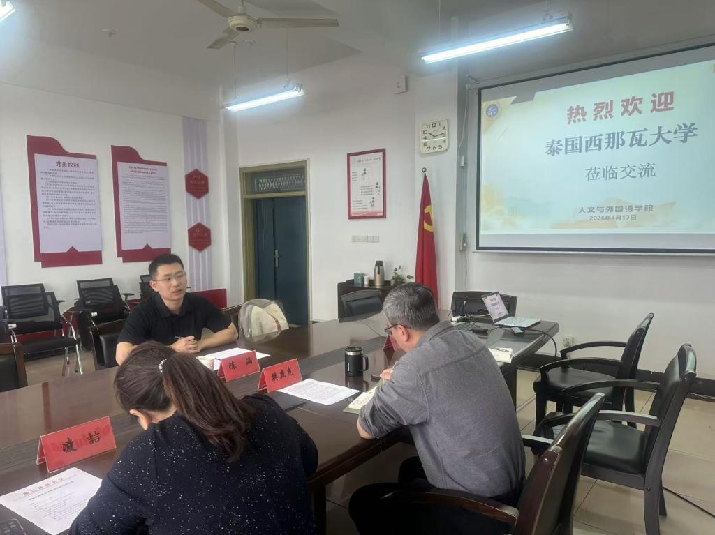 4月17日,泰国西那瓦国际大学校董事会副主席兼教育学院院长陈涵莅临我院,就校际合作相关事宜开展洽谈交流。我院院长樊燕龙、副院长凌喆热情接待来访嘉宾,并出席合作洽谈会。