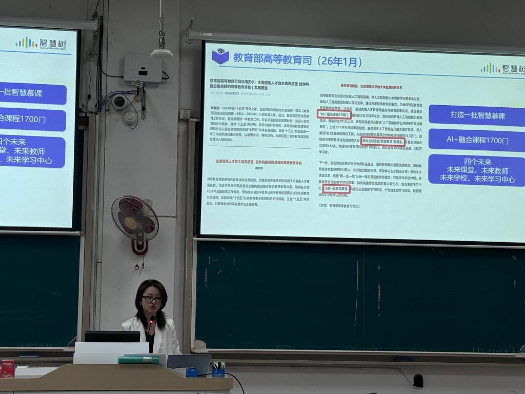 活动中,韩玉以“人工智能跨学科交叉融合课程线上资源建设”为题,系统阐述了如何利用智慧慕课平台实现优质教学资源的全国共享与可持续运行。她结合典型案例,展示了AI技术在课程设计、知识图谱构建、学习行为分析等方面的深度融合路径,强调智慧课程建设应兼顾技术赋能与教育本质,真正服务于学生成长与教学实效提升。