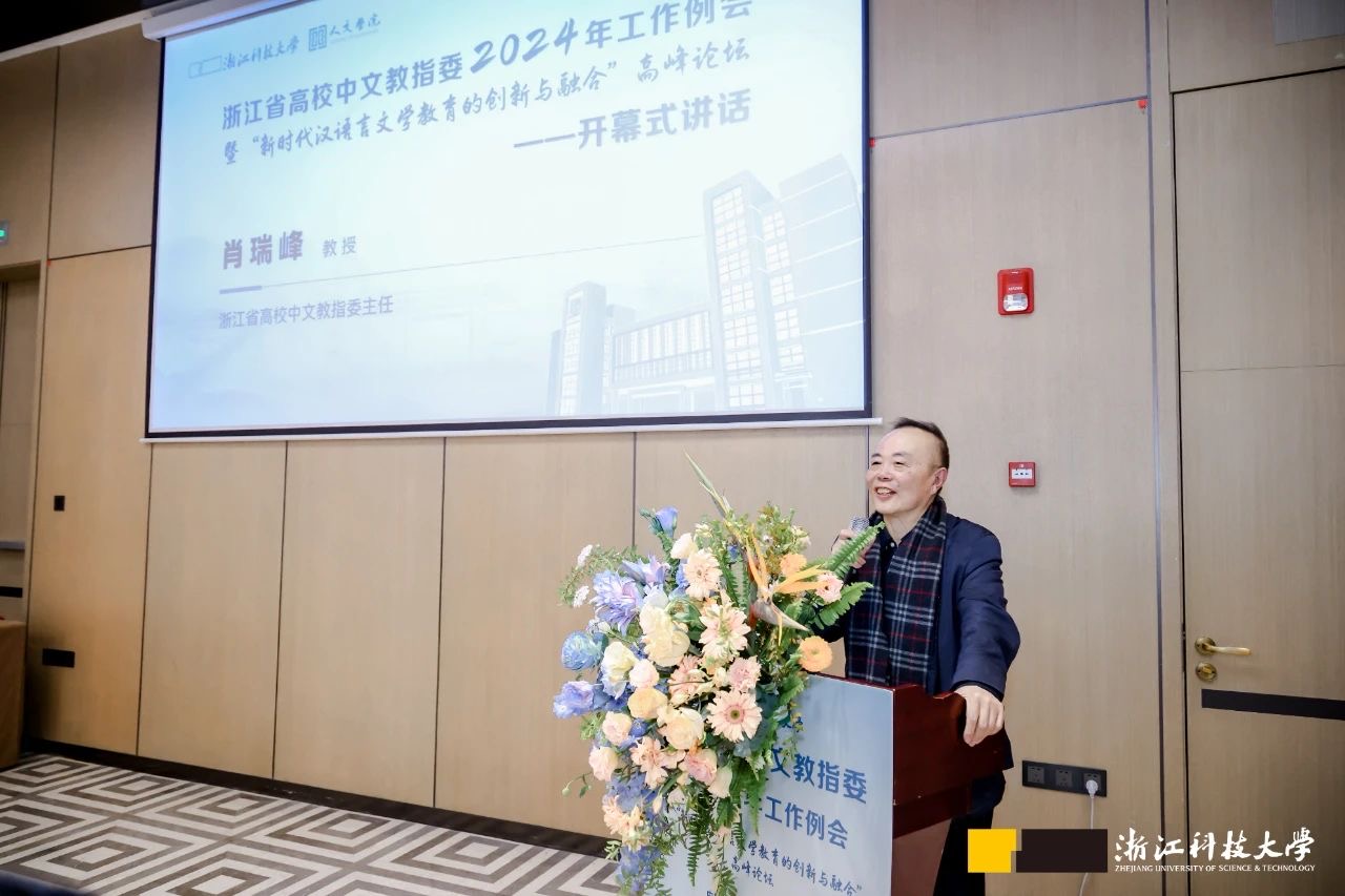 单胜道副书记代表我校对到场的领导、专家、学者及嘉宾表示了热烈欢迎,并感谢浙江省高等学校中国语言文学类专业本科教学指导委员会及各学术单位对我校汉语言文学专业建设的支持与指导。单副书记指出,我校一直依托学校国际化特色与理工科优势,积极探索科技与中文教育的深度融合,对我校汉语言文学教育的创新与发展提供了坚实支撑。他期待与会专家能在此次会议中碰撞思想火花,共同推动汉语言文学与数字化技术的融合,跨学科研究,进一步加强国际化交流与合作,创新驱动汉语言文学教育高质量发展。