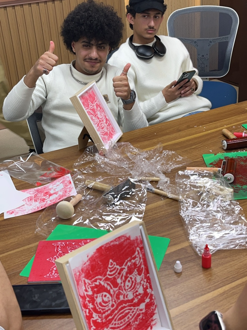 制作拓片过程中,同学们相互合作,共同雕刻着关于平安、喜乐以及中国传统“龙”等充满中国祝福的拓片。更为温馨的是,同学们将自己所印的祝福拓片赠送给在场的其他同学,以此表达对彼此的祝福与美好愿望。