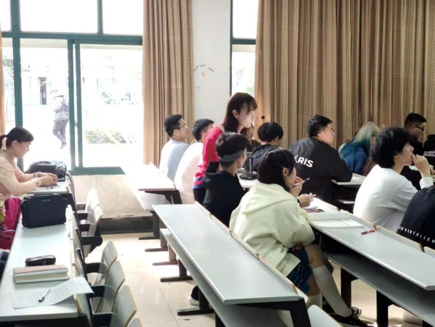 为严格把关精品在线开放课程建设项目验收,同时进一步提升课堂教学质量,积极倡导创新型教学,充分发挥优秀教师在教学中的引领示范作用,近日我院组织院教学督导组通过督导听课、材料审核等方式对方小卿、黄晶晶、黄扬三位老师主持的精品在线开放课程建设项目进行了结题验收。同时,为广大教师提供一个互相学习、共同提高的平台,组织面向全院的课堂教学观摩活动。全体外语教师观摩了分别于11月19日和11月20日由黄晶晶老师主讲的《国际交流英语》和黄扬老师主讲的《德语语言学导论》示范课。本次观摩活动由教学副院长王旭莲主持。