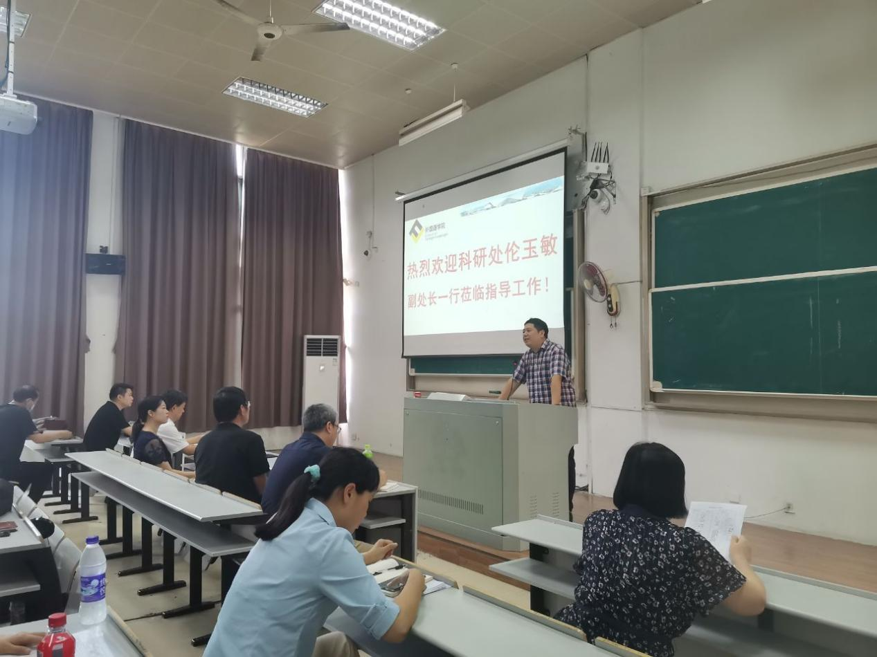 为了提高科研项目申报效率和质量,加强科研政策宣传教育,助力我院教师的科学研究,提升科研管理服务水平。6月29日上午,科研处副处长伦玉敏带领科研处赵昕丽、王光新、刘青晔老师一行,莅临我院宣讲科研政策。会议由樊燕龙院长主持,外国语学院全院教职工参加了此次会议。